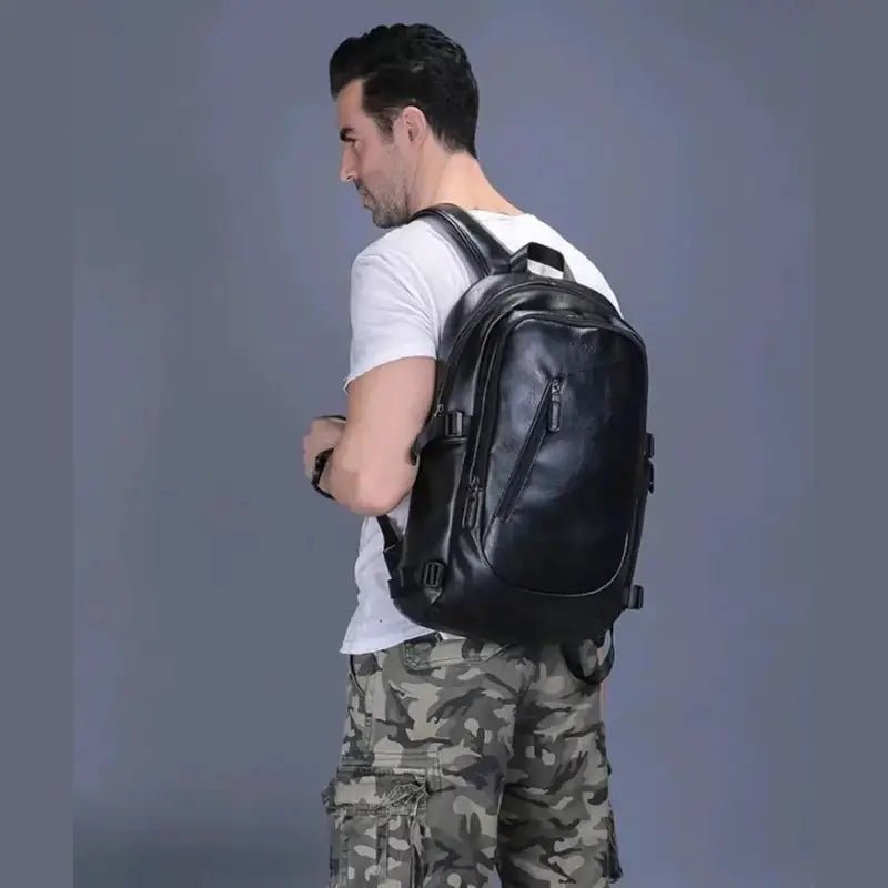 Améliorez votre style et faites une déclaration avec ce grand sac à dos en cuir pour hommes. Ce sac est fait de cuir pu véritable et est complètement imperméable, ce qui le rend parfait pour toute aventure.