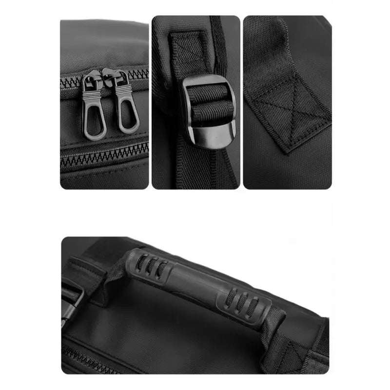 Il dispose de plusieurs poches et ouverture répartie sur les cotés, l'avant et l'arrière et d'un grand compartiment principal. Grace à sa composition en nylon, il offre une excellente résistance et étanchéité à l'eau. Il est aussi doté d'une poignée latérale renforcé sur le coté pour pouvoir le transporter comme un bagage et d'une bandoulière incluse.