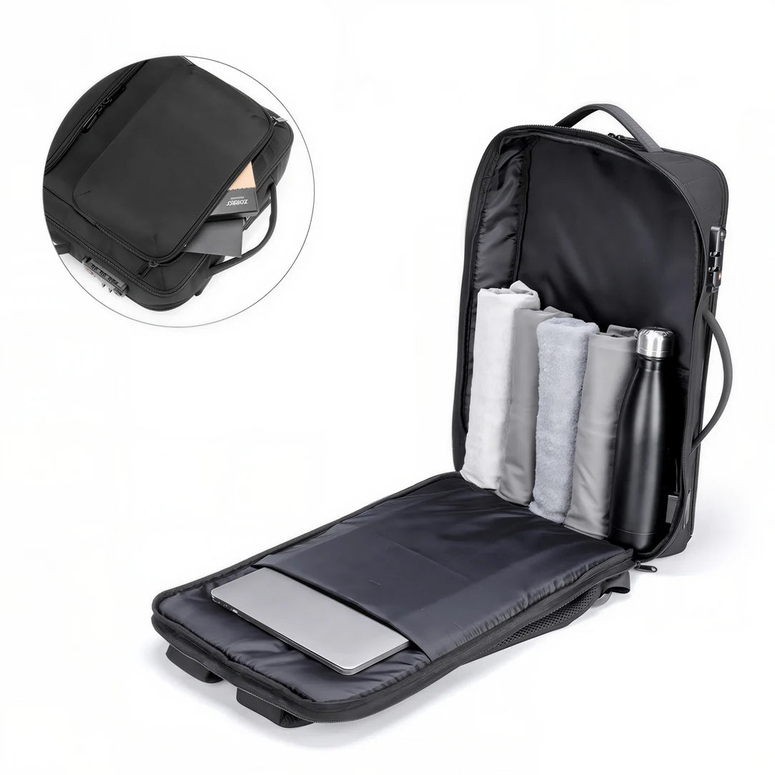 Grâce à sa forme droite et structurée, chaque objet trouve facilement sa place, évitant le désordre lors des journées chargées. Son cadenas TSA intégré renforce la protection de vos affaires, notamment lors de vos déplacements en ville ou en voyage.