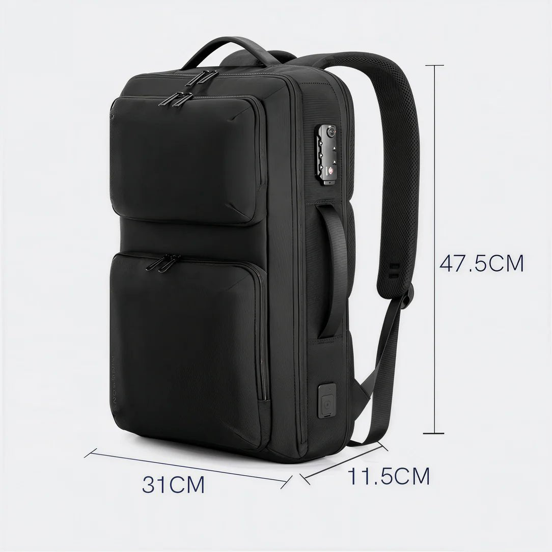Le Guardian est un sac à dos de travail au format rectangulaire doté d'un antivol TSA pensé pour maximiser l’espace et simplifier l’organisation. Son compartiment arrière dédié protègera un ordinateur jusqu’à 15,6 pouces ainsi qu’une tablette 12 pouces, tandis que ses deux poches frontales zippées et son compartiment principal offrent de quoi ranger efficacement documents, accessoires et effets personnels.