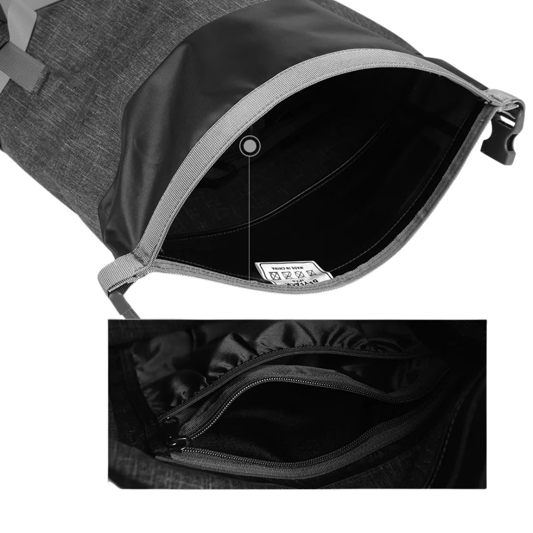 - Type de Fermeture : fermeture à zip étanche et roll top avec clips