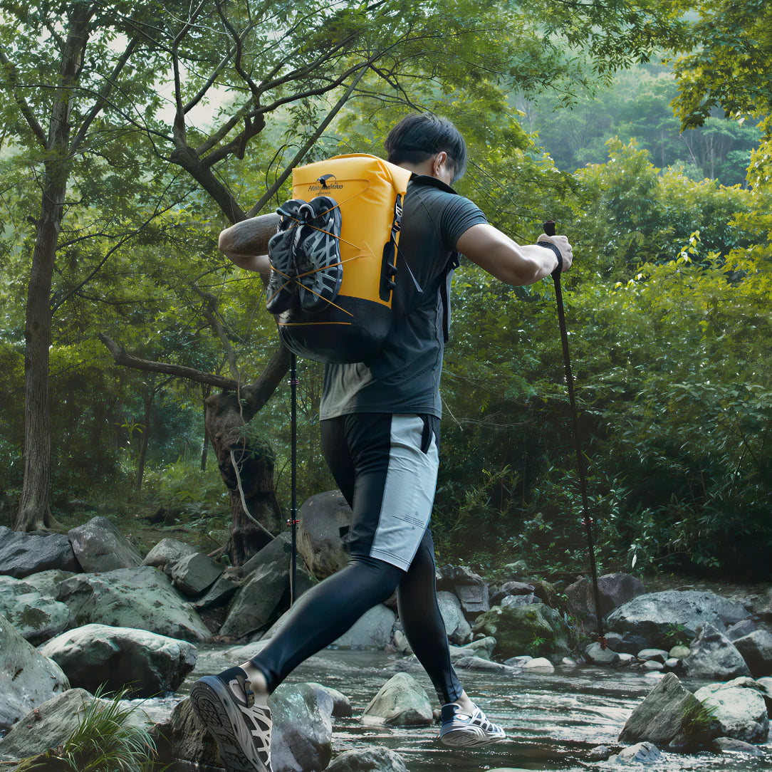 Son design entièrement étanche permet de garder vos affaires parfaitement au sec, quelles que soient les conditions météo. Pluie intense, éclaboussures, traversée de rivière ou navigation en kayak : le contenu du sac reste protégé contre l’eau et l’humidité.