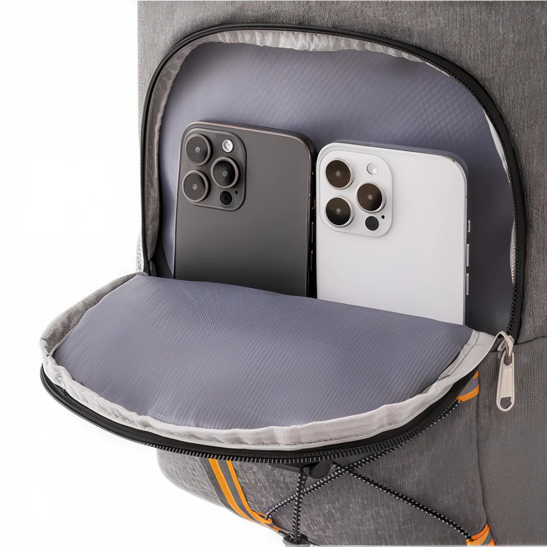 Son grand compartiment isotherme principal conserve efficacement la température grâce à la doublure EVA en aluminium étanche, tandis que la poche avant zippée et les deux poches latérales offrent un rangement fonctionnel pour les petits accessoires, cartes ou objets de randonnée.