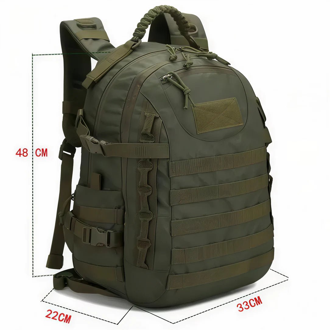 Ce sac à dos militaire 35L est conçu à partir de nylon et de tissu oxford 1050D, un textile haute densité reconnu pour sa résistance exceptionnelle à la déchirure et à l’abrasion. Sa capacité de 35 litres permet d’emporter efficacement l’ensemble de votre équipement, que ce soit pour, une randonnée ou un usage tactique intensif.