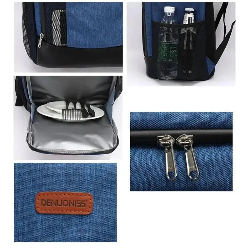 Notre sac à dos picnic isotherme est l'accessoire idéal pour les amateurs de pique-nique, les randonneurs, les campeurs et tous ceux qui aiment emporter leur nourriture et leurs boissons au frais lors de leurs activités en plein air ou au travail. Ce sac à dos spacieux est conçu pour contenir tout ce dont vous avez besoin pour un pique-nique réussi.