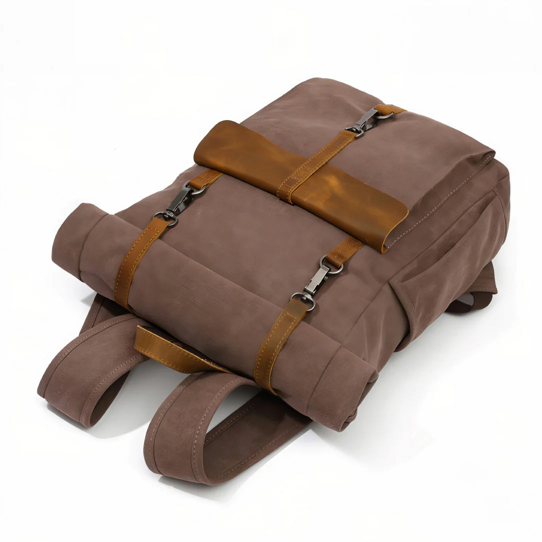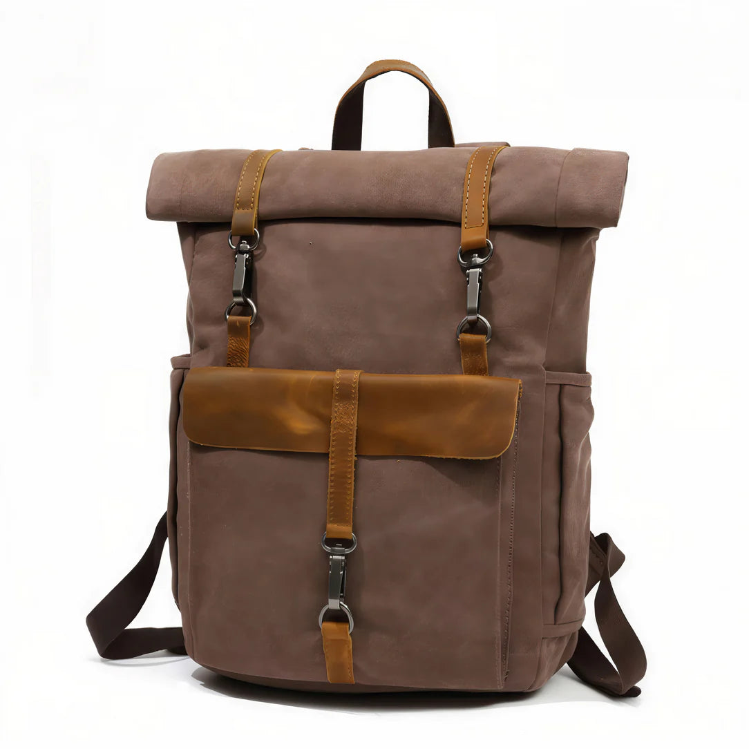 Le sac à dos Era associe l’élégance du vintage et la praticité du moderne. Avec son système roll top et ses sangles en similicuir à fermoir émerillon, il dégage un style authentique, renforcé par une toile de coton robuste. Idéal pour ceux qui aiment les accessoires avec du caractère.