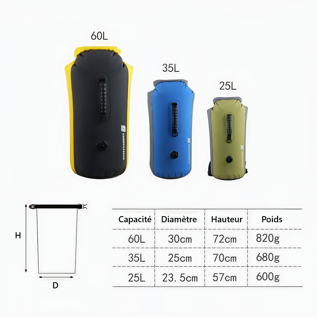 Sac à dos waterproof - 25 à 60 L IPX7