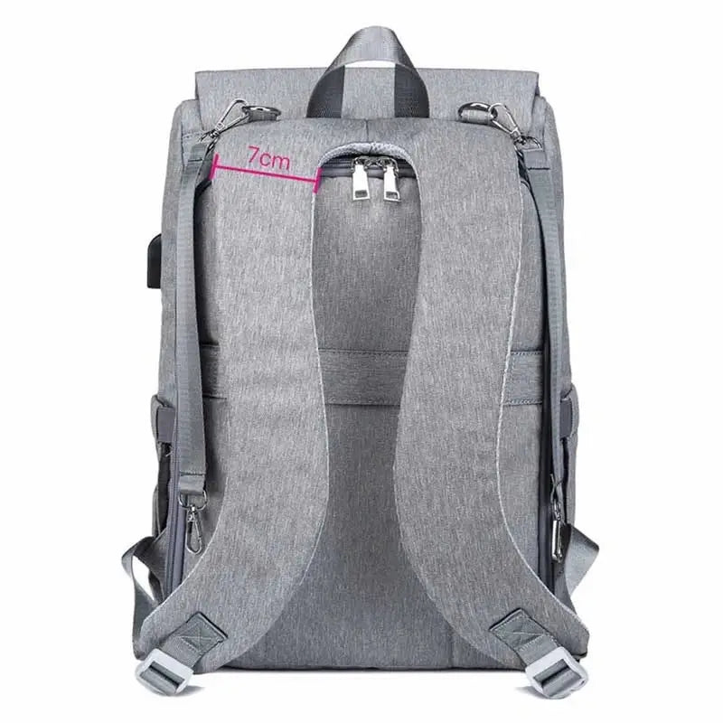 Très léger, il dispose de bretelles larges rembourrées pour un confort de portabilité optimal. Il est doté d'un grand compartiment avec de nombreux rangement, de poches latérales et frontales et une à l'arrière déployant un support pour changer les couches et vous occuper de bébé. Il est fourni avec deux sangles pour poussette et d'un port usb pour recharger votre téléphone en toute circonstance.