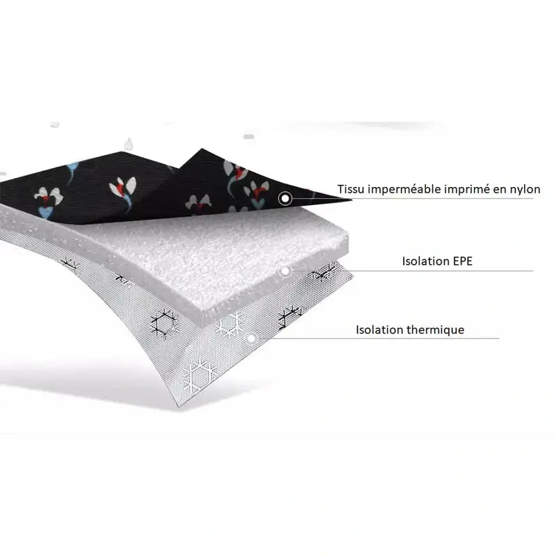 Sa conception en polyester 300D lui offre une grande résistance face aux déchirures et chocs et une excellente imperméabilité pour garder les affaires de bébé. Il peut se porter à la main ou sur le dos grâce a ses bretelles ajustables, dispose d'un scratch de fixation et est fourni avec deux sangles d'attaches poussette. Disponible en plusieurs coloris et motif imprimé.