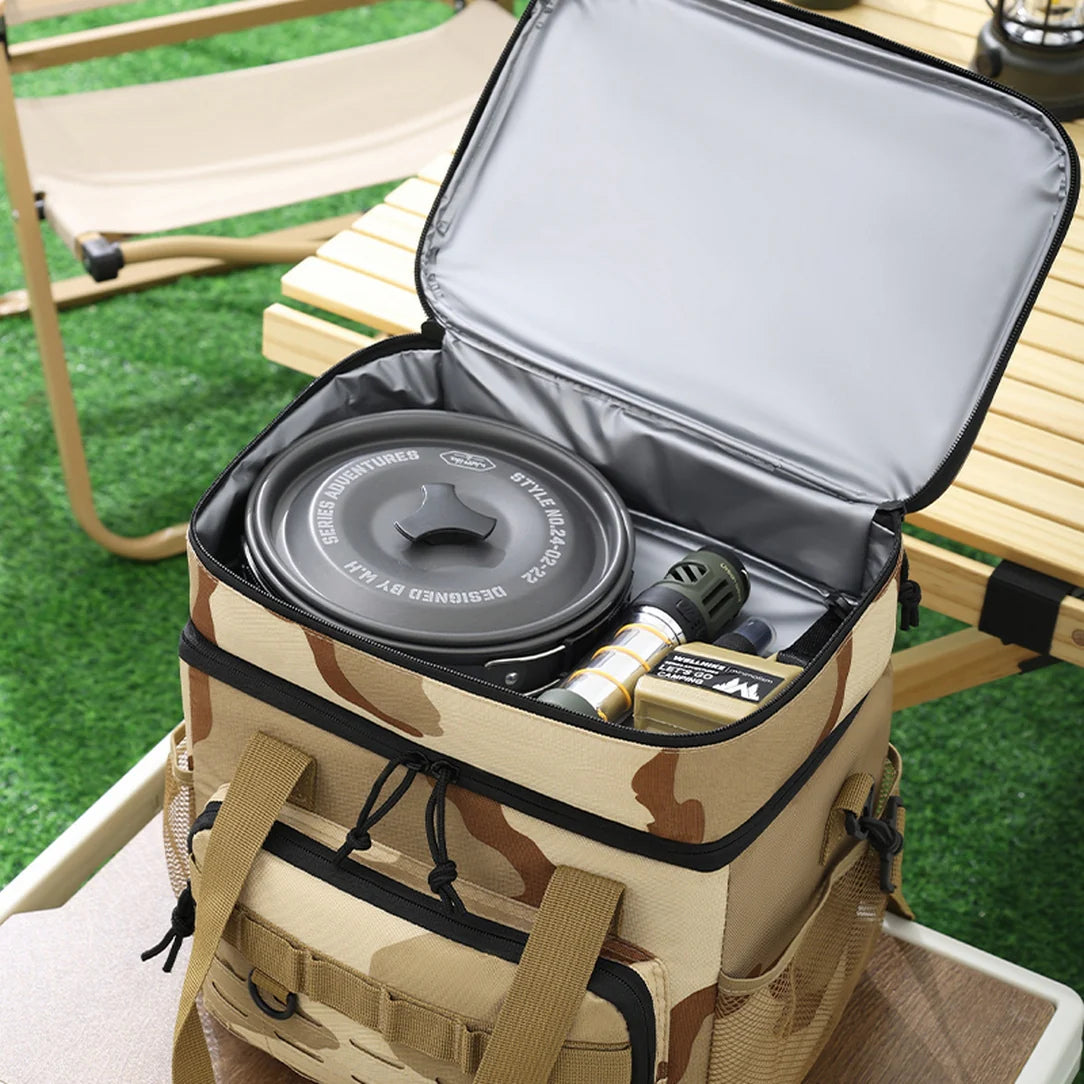 Pensé pour les amateurs d’aventure et les activités en plein air, ce sac isotherme camouflage offre une capacité de 18 litres bien agencée. Son double compartiment principal permet de séparer les aliments et les boissons, ou de distinguer le froid du sec selon vos besoins.